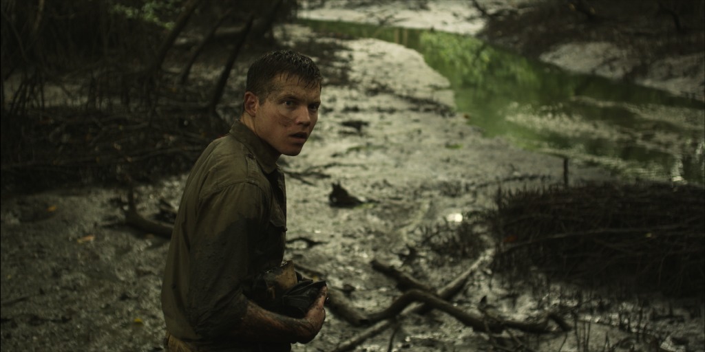 With a smatter of dialogue the film relies heavily on the story being told by body language and facial expressions as Jim sloshes, stumbles, bulldozes, runs and walks through the jungle ever seeking refuge from the Japanese soldiers and their constantly heard percussive weaponry. Each facial and body move, blink, look, turn and pause was minutely examined, tweaked reframed and re-explored to build upon what had gone before.